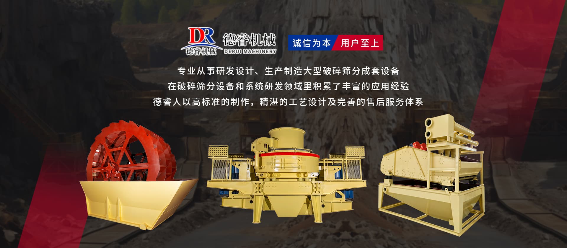 德睿重型機械是從事研發(fā)設(shè)計、生產(chǎn)制造大型破碎篩分成套設(shè)備的現(xiàn)代高新技術(shù)企業(yè)集團,公司總部座落于廣東工業(yè)重鎮(zhèn)、韶關(guān)市湞江區(qū)工業(yè)園,有現(xiàn)代化辦工場地、研發(fā)中心和標準化廠房,多種大型機械加工設(shè)備10余套,現(xiàn)公司技術(shù)人員40余名。 公司在主要城市均設(shè)有辦事處,配有豐富實戰(zhàn)經(jīng)驗的設(shè)計工程師,方便為各地客戶現(xiàn)場分析、配置生產(chǎn)線并提供及時、周到的售后服務(wù)。 目前產(chǎn)品已覆蓋東南亞、中東、非州、歐州等多個國家和地區(qū),并獲得客戶的好評。公司已成為主要的專業(yè)礦山設(shè)備,工業(yè)磨粉、碎石制砂設(shè)備的生產(chǎn)和出口基地之一。 “誠信為本,用戶至上”德睿人以高標準的制作,精湛的工藝設(shè)計及完善的售后服務(wù)體系在破碎篩分設(shè)備和系統(tǒng)研發(fā)領(lǐng)域里積累了豐富的應(yīng)用經(jīng)驗。借助在破碎行業(yè)的豐富經(jīng)驗,公司可向客戶提供碎石制砂生產(chǎn)線設(shè)計、安裝、調(diào)試等交鑰匙工程,同時承接破碎系統(tǒng)的爆破、裝運、破碎等生產(chǎn)運行總承包。